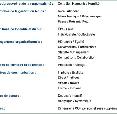 Le Tableau des Orientations Culturelles (COF) assessment facilite la compréhension des caractéristiques culturelles saillantes au niveau des individus, des équipes et des organisations.