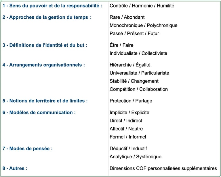 Le Tableau des Orientations Culturelles : Cultural Orientations Framework (COF)